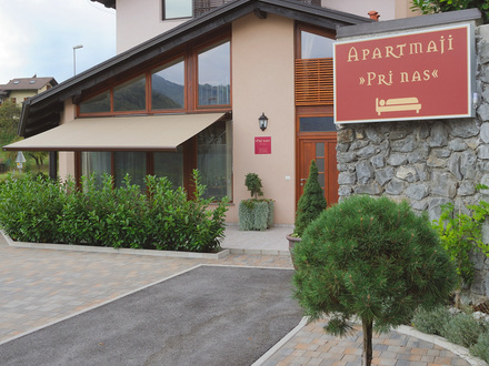 Apartmaji PRI NAS Kobarid - idealno udobje za prijeten oddih in sprostitev.Nudimo vam prijetno bivanje in sprostitev v novo zgrajenih in sodobno opremljenih apartmajih, kjer smo za vaše udobje poskrbeli s kančkom svojevrstnosti. V njih preveva očarljiva eleganca in prefinjena kombinacija modernega z udobnim in domačnim. Okolica je urejena z velikim parkiriščem in travnatim vrtom, za posedanje in uživanje v občudovanju narave. V kolikor si zaželite vodnega razvajanja, vam na terasi objekta nudimo brezplačno, dvourno, sprostitev v masažnem bazenu za štiri osebe.