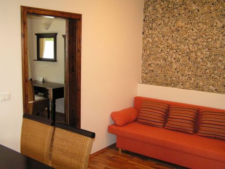 - dnevni prostor (sedežna garnitura s pomožnim ležiščem, 32"LCD SAT TV, brezplačni brezžični internet)